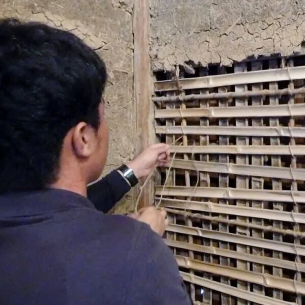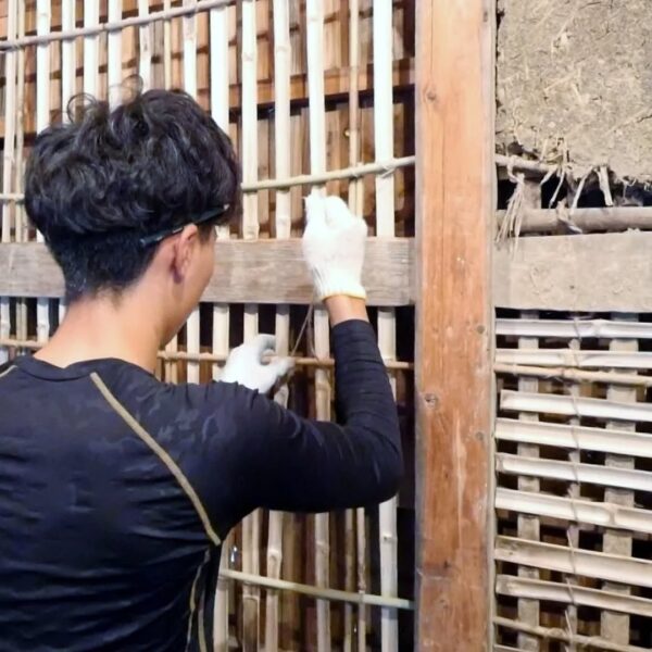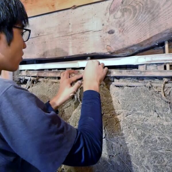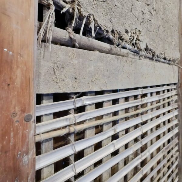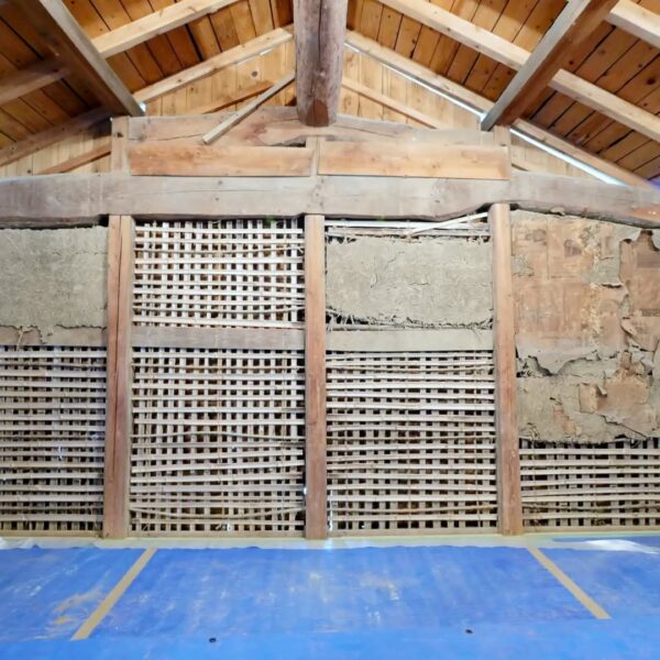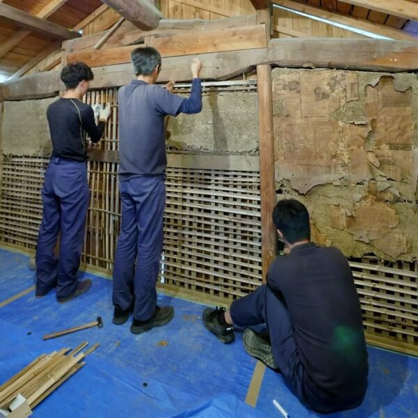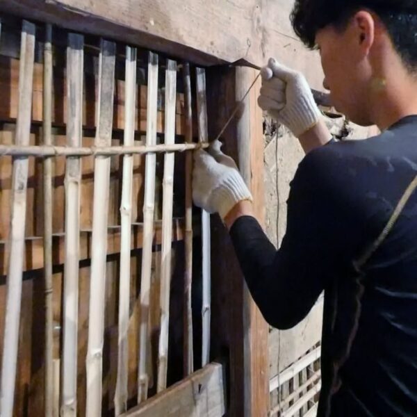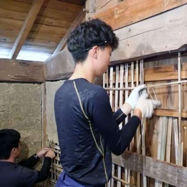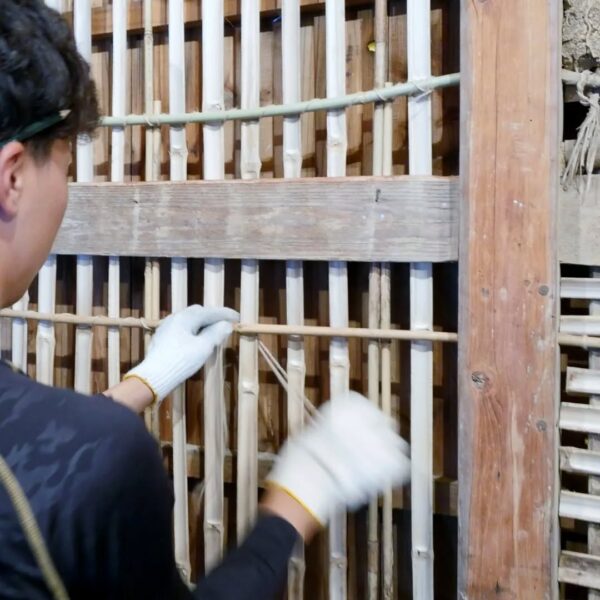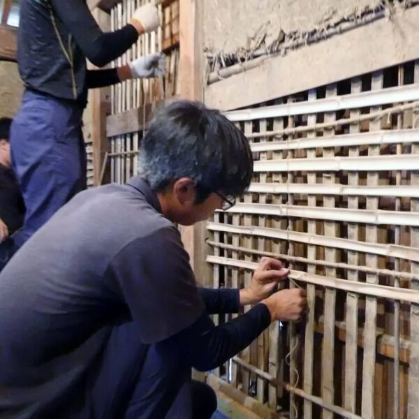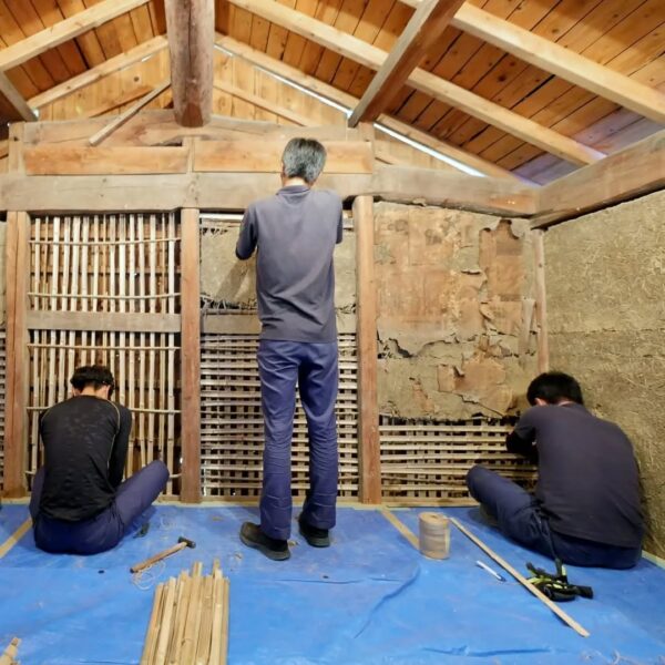 築100年超の納屋再生工事、竹小舞の修復