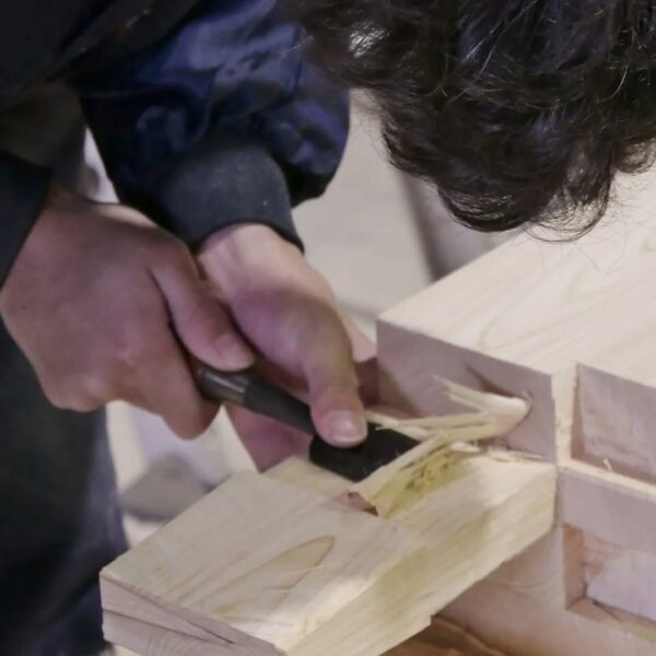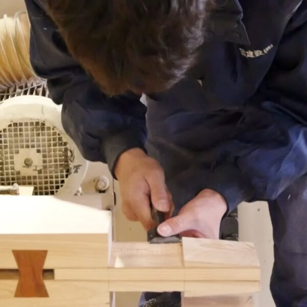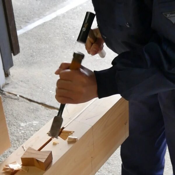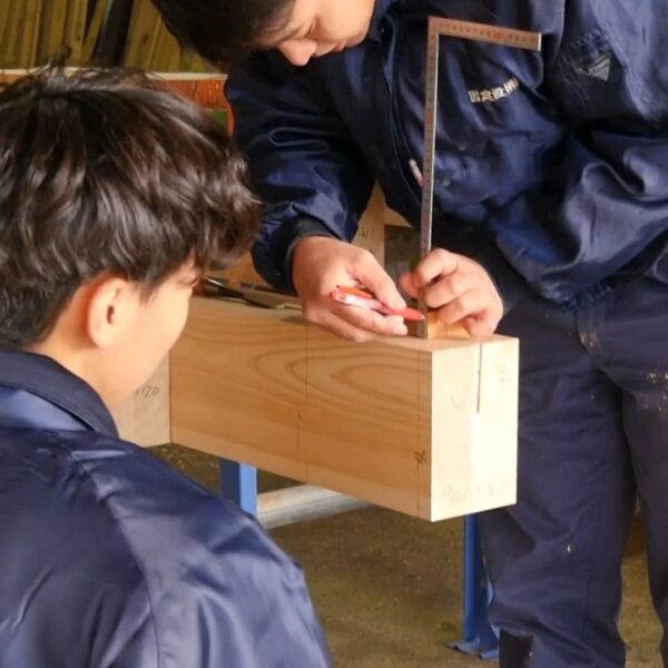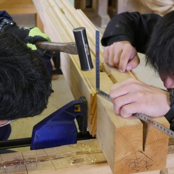 今年入社した、職人や現場管理のプロフェッショナルを目指す若者たちが、研修や現場経験を積み重ね、1年目の集大成に挑んでいます。これまでに学んだ墨付け、刻み、小舞掻き、左官といった技術を活かし〝土の蔵〟建築に挑戦。