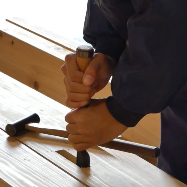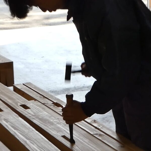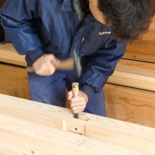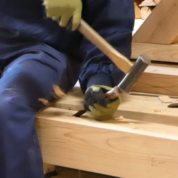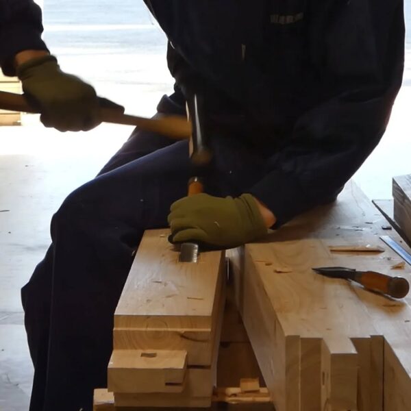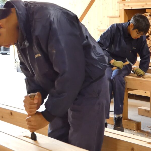 今年入社した、職人や現場管理のプロフェッショナルを目指す若者たちが、研修や現場経験を積み重ね、1年目の集大成に挑んでいます。これまでに学んだ墨付け、刻み、小舞掻き、左官といった技術を活かし〝土の蔵〟建築に挑戦。