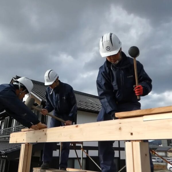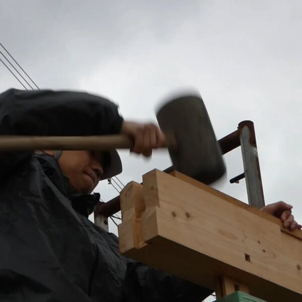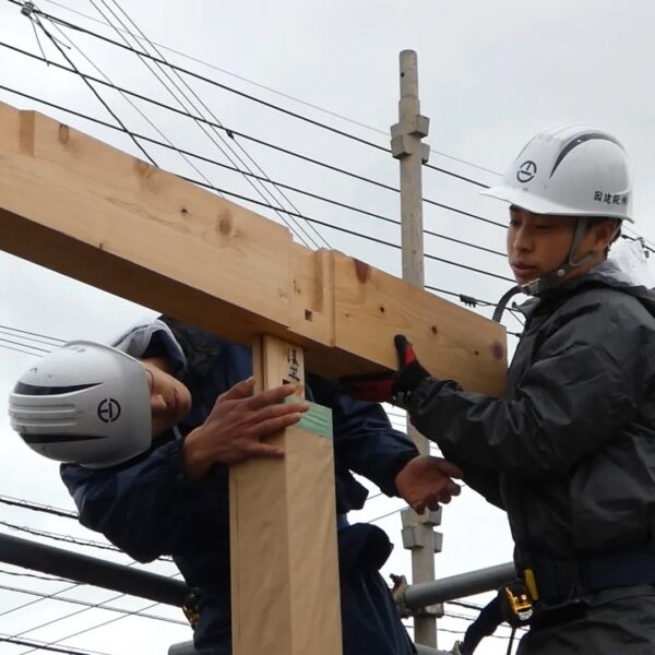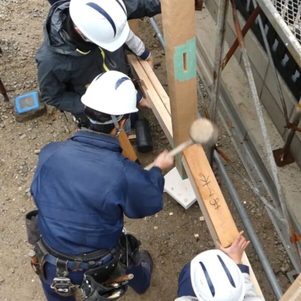 今年入社した、職人や現場管理のプロフェッショナルを目指す若者たちが、研修や現場経験を積み重ね、1年目の集大成に挑んでいます。これまでに学んだ墨付け、刻み、小舞掻き、左官といった技術を活かし〝土の蔵〟建築に挑戦中。成功も失敗も、すべてが大きな成長につながる貴重な経験です。若者たちの挑戦は、これからも続いていきます。
