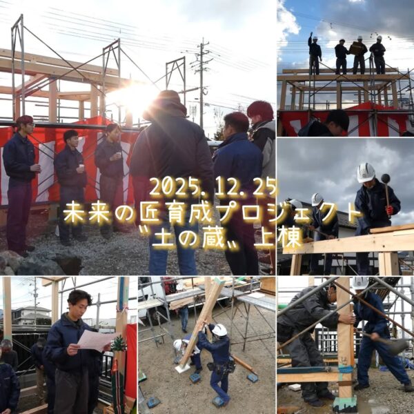 未来の匠育成プロジェクト〝土の蔵〟は、無事に上棟の日を迎えることができました。上棟式では、祝詞や散餅銭の儀など、ひとつひとつの意味を理解しながら、伝統に触れる貴重な初体験となりました。
