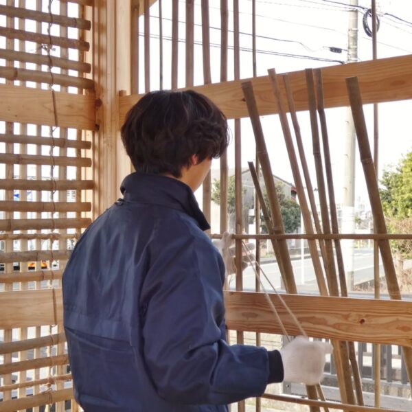 女竹と真竹を縄で一本一本編み上げる竹小舞。土壁を支える大切な下地です。若者たちが向き合い、丁寧に仕上げてくれました。その手つきには、この一年で積み重ねてきた確かな成長が感じられます。