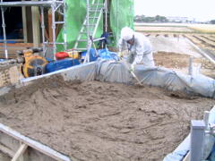 土に石灰や水(にがり)等を混ぜ、叩き固めて仕上げます。