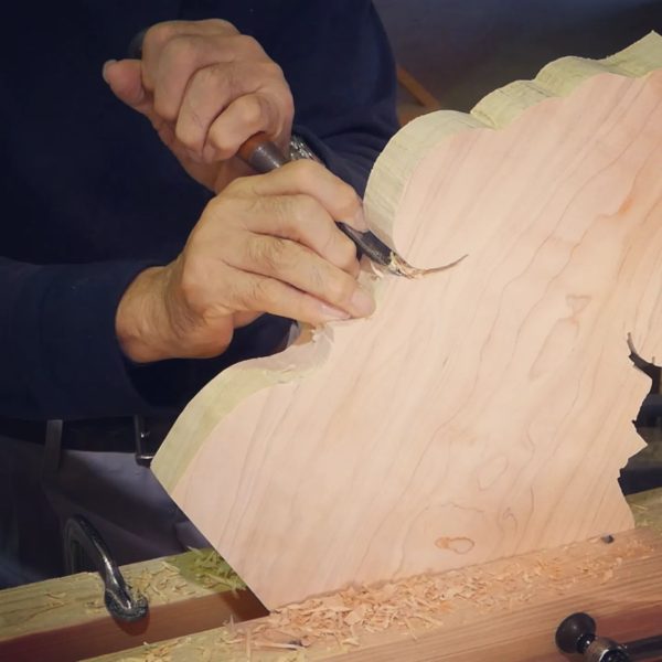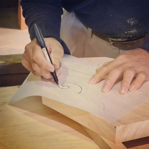 只今刻工房では、地元神社の建替工事、上棟前の加工を黙々と行っております。
